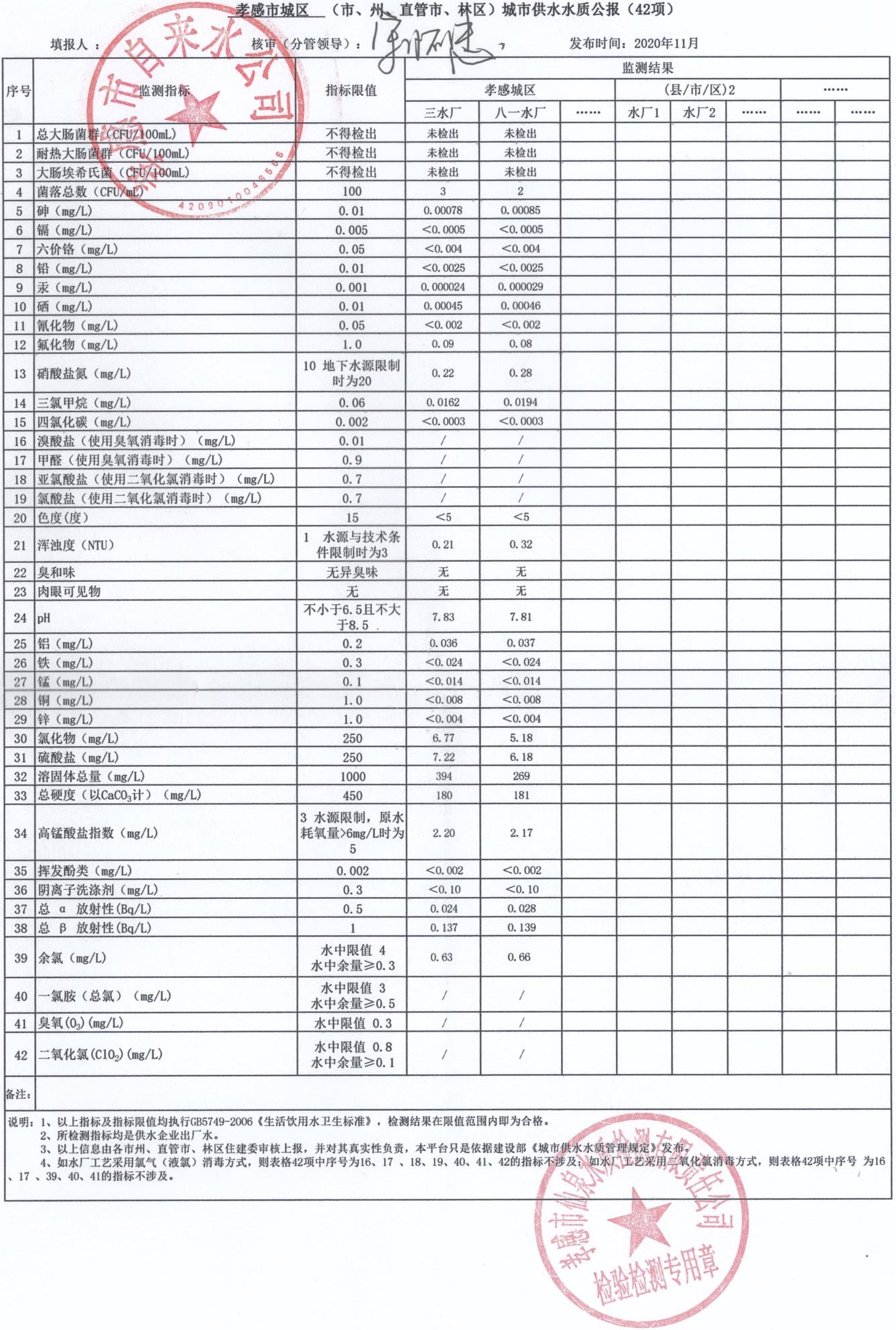 2020年11月水質(zhì)報(bào)告